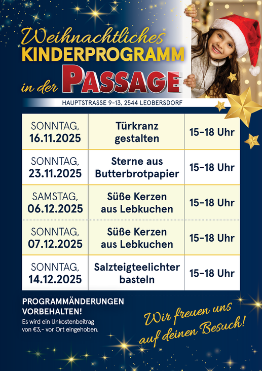 In der PASSAGE Leobersdorf wird’s bald weihnachtlich bunt –