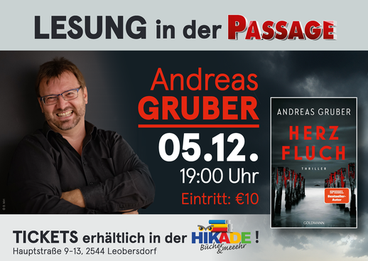 Am 05.12. liest ANDREAS GRUBER um 19 Uhr in der PASSAGE Leobersdorf aus seinem neuesten Thriller "Herzfluch".